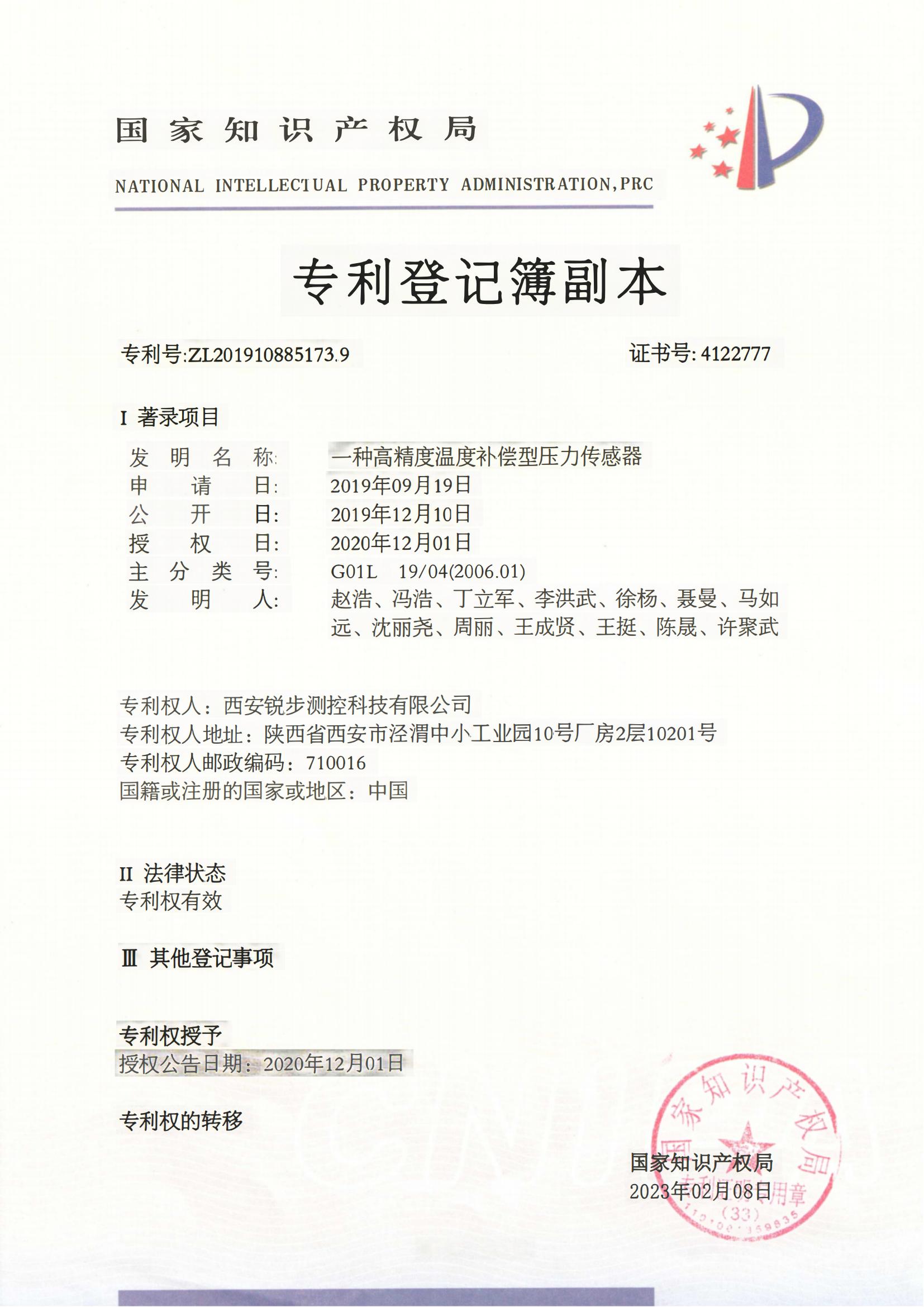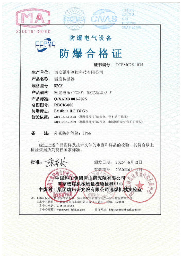 温度传感器资质证书
