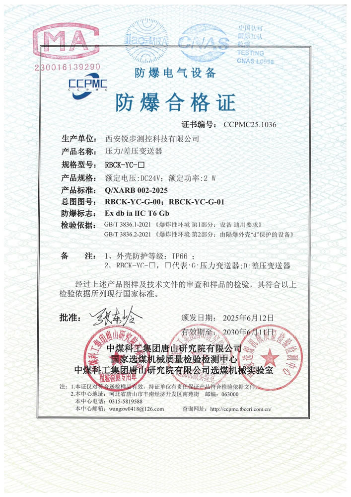 压力变送器防爆资质证书